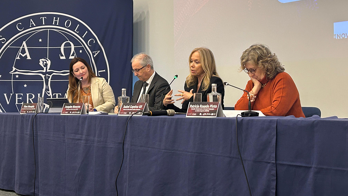 O programa prosseguiu com um painel temático dedicado à dimensão pedagógica na função docente no ensino superior, que reuniu responsáveis institucionais e especialistas nacionais. O debate contou com a participação de Joaquim Mourato, Diretor-Geral do Ensino Superior, de Patrícia Rosado Pinto, do CNIPES, e de Isabel Capeloa Gil, Reitora da Universidade Católica Portuguesa, sob a moderação de Diana Mesquita.