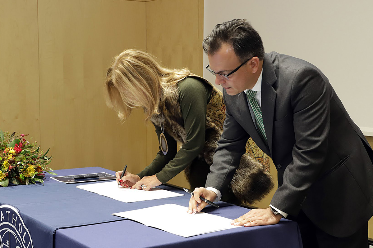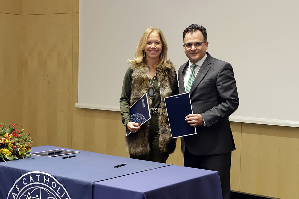 Isabel Capeloa Gil, reitora da Universidade Católica Portuguesa, partilhou a enorme importância desta parceria que é lançada “num momento em que a Universidade está a recentrar a sua missão não apenas na investigação, onde somos excelentes, mas também em fazer da Universidade um espaço de reinvenção contínua, integrando uma diversidade de ideias, experiências e práticas, e em particular reforçando as pontes entre disciplinas, comunidades, e muito especificamente com a indústria e os mercados.” Isabel Capeloa Gil reforçou também que “esta jointventure nasce num momento em que se vê uma transição mundial para a bioeconomia.