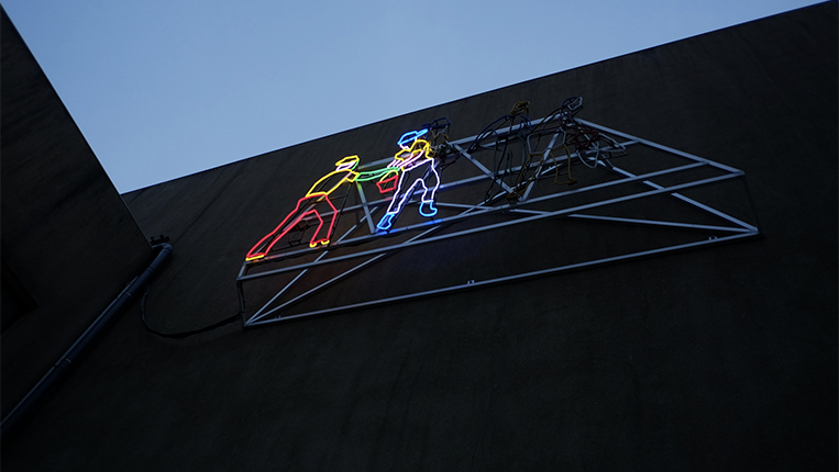 A escultura-néon já lá está desde o final de Outubro, na fachada...